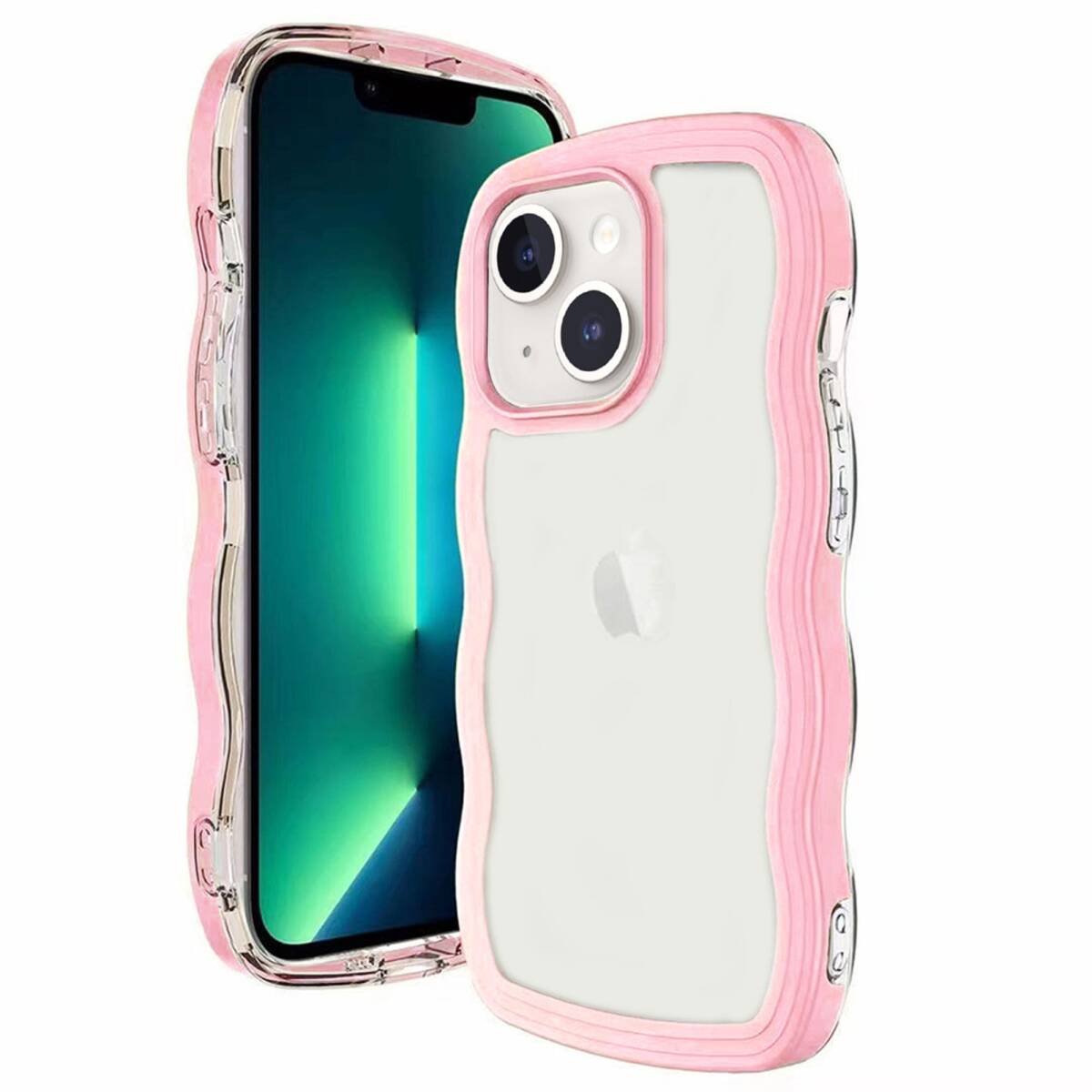 - カバーアイ フォン15 ケース いpほね15 ウェーブ うねうね ニュアンス パステルカラー 背面クリア 15対応 透明 推し活