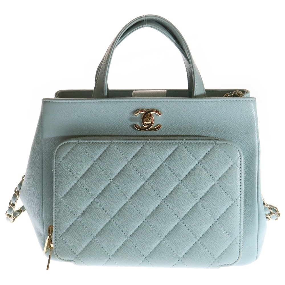 - CHANEL シャネル アフィニティ スモール 2wayハンドバッグ ショルダーバッグ ライトブルー キャビアスキン ゴールド金具 A93750