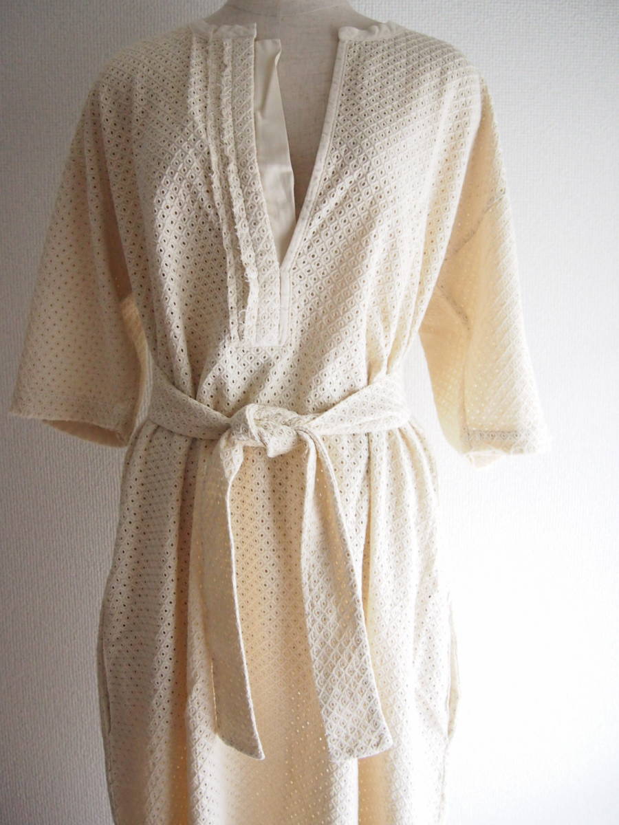 > u133【新品未使用36,000円】オランダ発 HUMANOID ヒューマノイド レース ワンピース ベルト付き レース たっぷりサイズワンピ 白 生成り