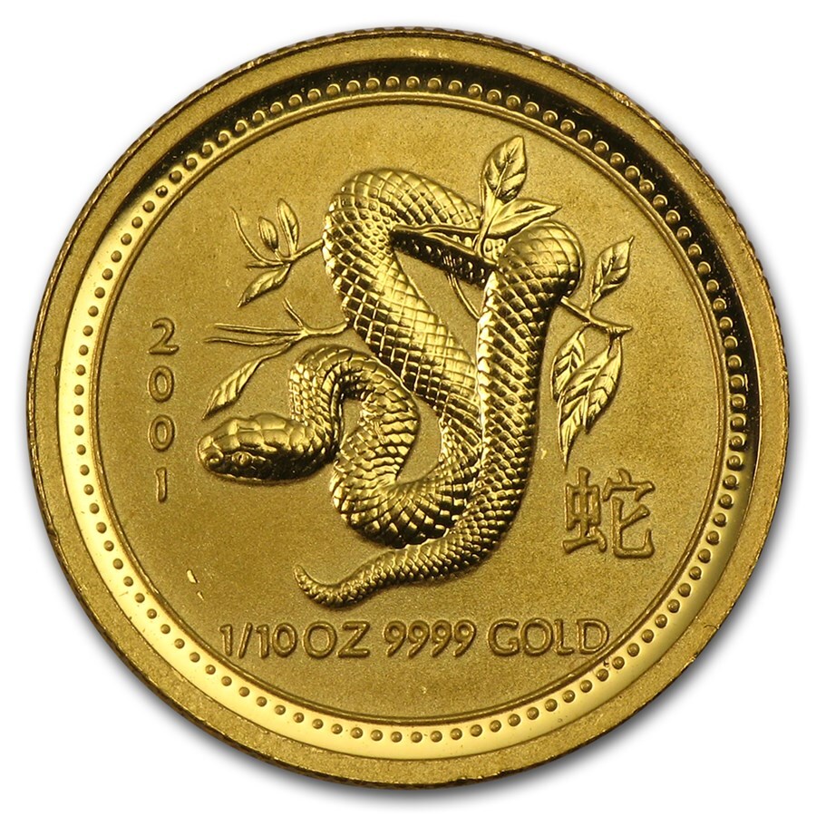 - [保証書・カプセル付き] 2001年 (新品) オーストラリア「干支 十二支・巳年 蛇年」純金 1/10オンス 金貨