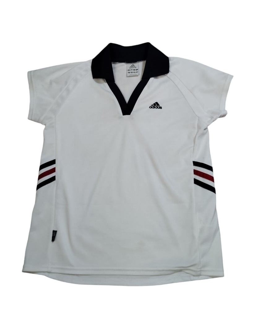- (sp60)アディダス adidas 半袖シャツ スポーツウェア サイズL レディース ゴルフ ホワイト/ネイビー/レッド トレーニング