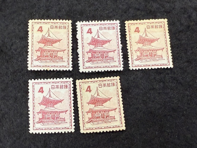 - 5、日本切手 石山寺多宝塔 4円 おまとめ 5枚 未使用
