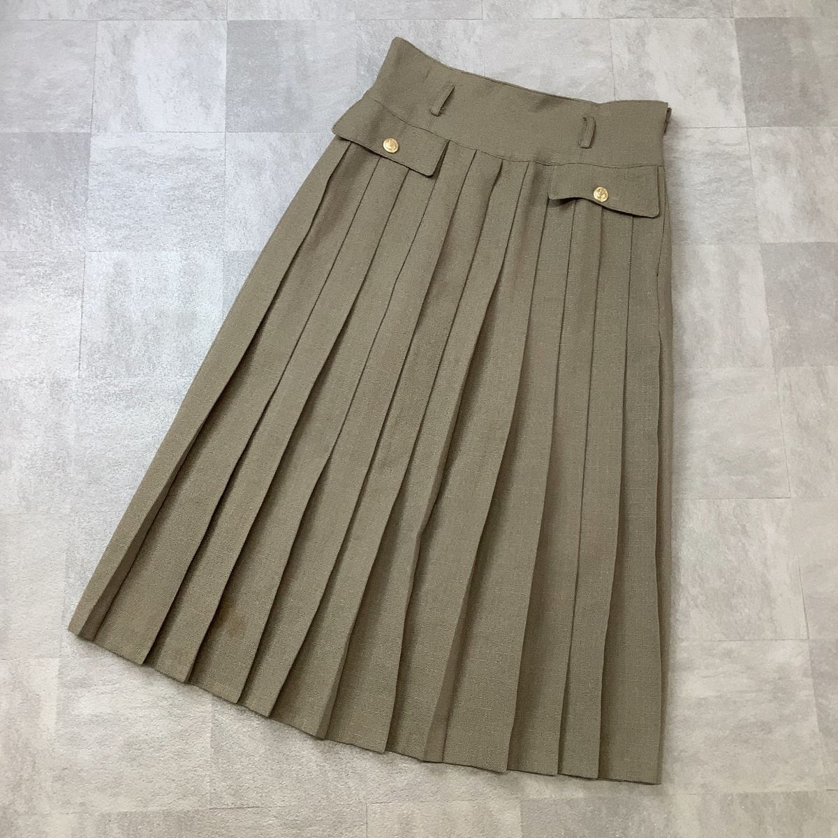 - 伊太利屋 イタリヤ プリーツ ロングスカート レディース 9A2 M 金ボタン ゴールドボタン