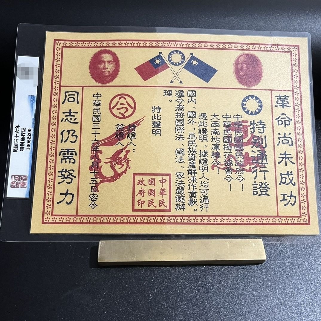 - 送料無料 特別通行証 中国民国証明書 美品 外国工芸品 簡易包装 郵便発送 ZH695