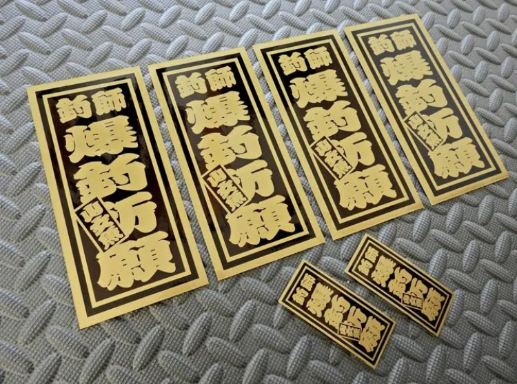 - 希望の文字で製作します!【オリジナル千社札】6枚セット 防水ステッカー 黒金 釣り デコトラ クロカン ジムニー
