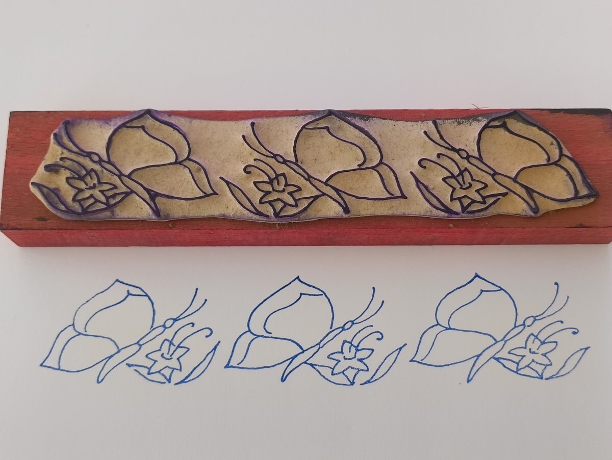 - 横長 花の蜜を吸うちょうちょ バタフライ 昆虫 フランス アンティーク 刺繍 絵柄 スタンプ ヴィンテージ ハンコ イラスト 素材 アゲハ蝶 仏