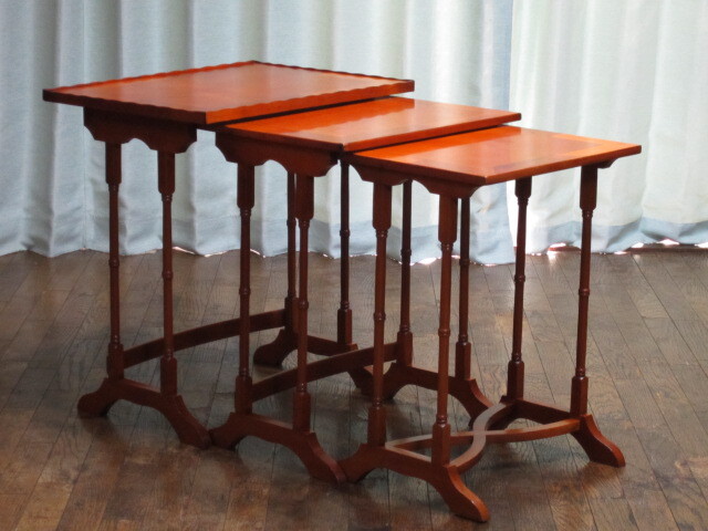 - 英国 イギリス ヴィンテージ ストリンギング 線象嵌 インレイ 3つ組 ネストテーブル/サイドテーブル/西洋/アンティーク/クラシック
