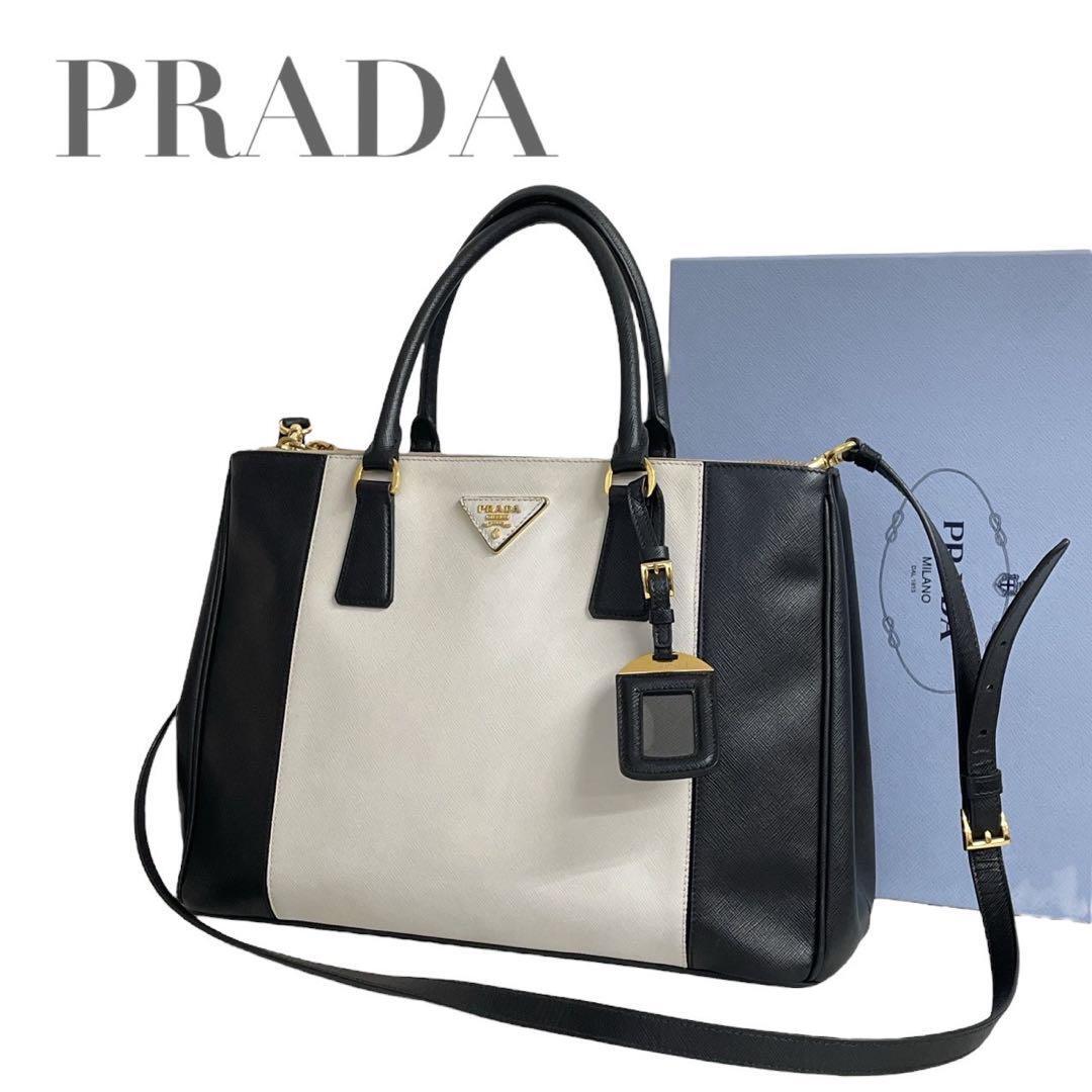 > 希少極美品 プラダ サフィアーノ ガレリア 三角ロゴ バイカラー 5113