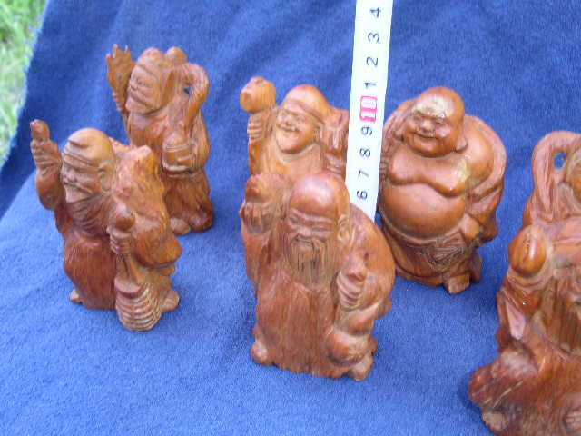- ★レトロ★ 木彫り 七福神 柘植 縁起物 置物 床飾り (ビンテージ・アンティーク・インテリア)
