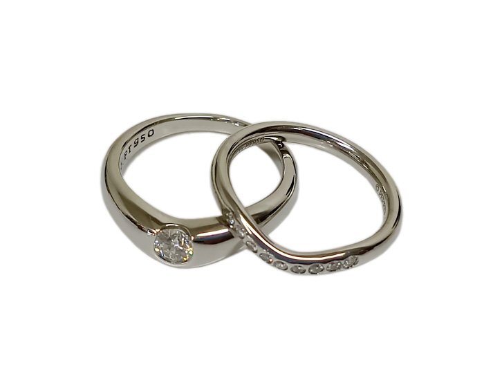 - TIFFANY&Co. ティファニー Pt950 カーブド ダイヤリング バンドリング 1PD 7.5号 5.7g 9PD 6.5号 3.2g プラチナ 指輪 ケース有 新品仕上済