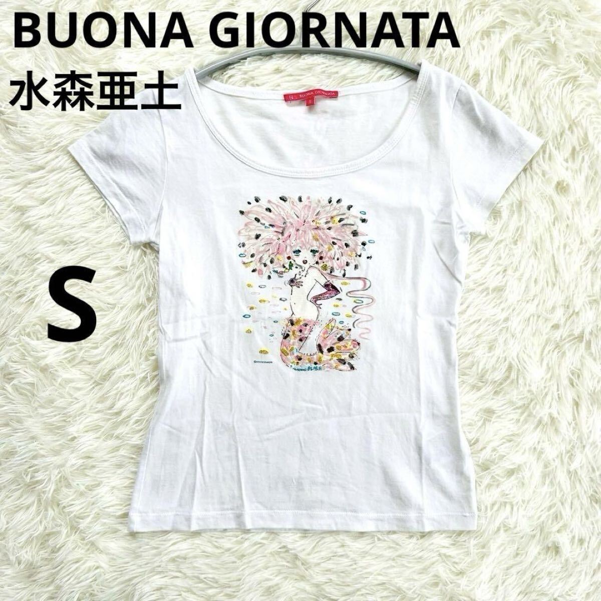 - 大特価 希少 水森亜土 アドちゃん Tシャツ ボナジョルナータ マーメイドプリント 白 ホワイト 丸首 レディース Sサイズ 推し活 鑑賞