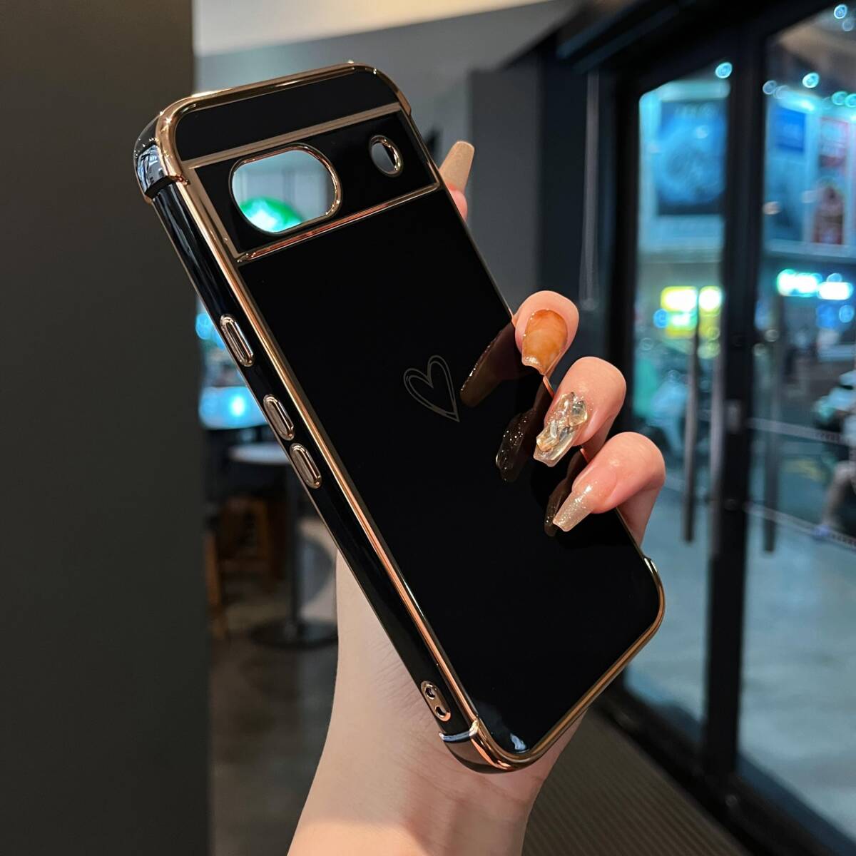 - ハートケース 柔軟な TPU 用 シリコン メッキ加工 ソフト 軽量 8a 耐衝撃 おしゃれ 韓国 Pixel 可愛い グーグル