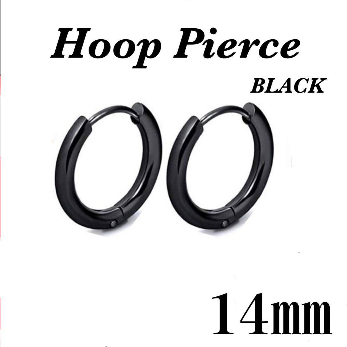 - フープピアス ブラック ステンレス 14㎜ 2個セット