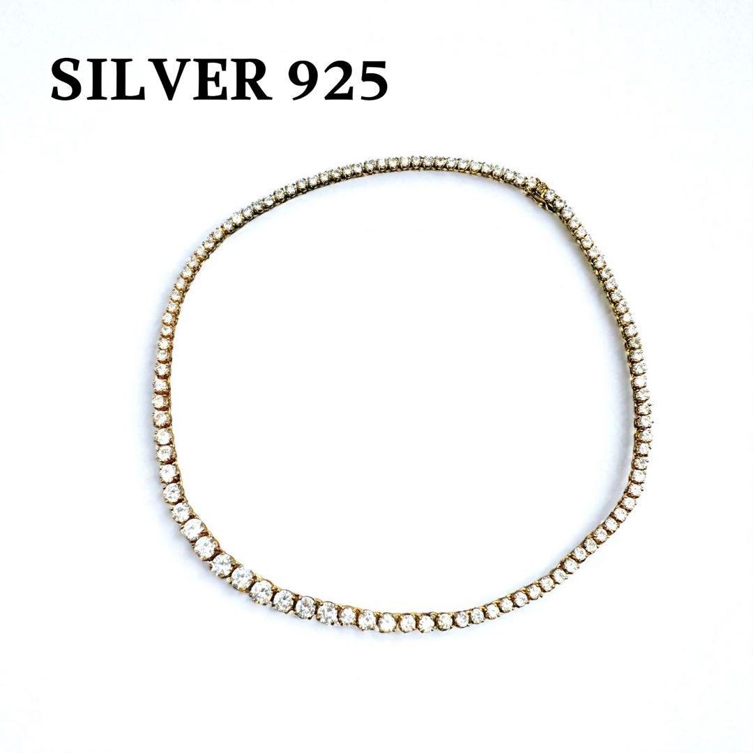 - 【美品】テニスネックレス〈SILVER 925〉ジルコニア ライトストーン SV
