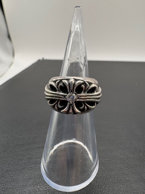 - クロムハーツ Chrome Hearts フローラルクロス 純正1Pダイヤ リング 約9号 15.7g