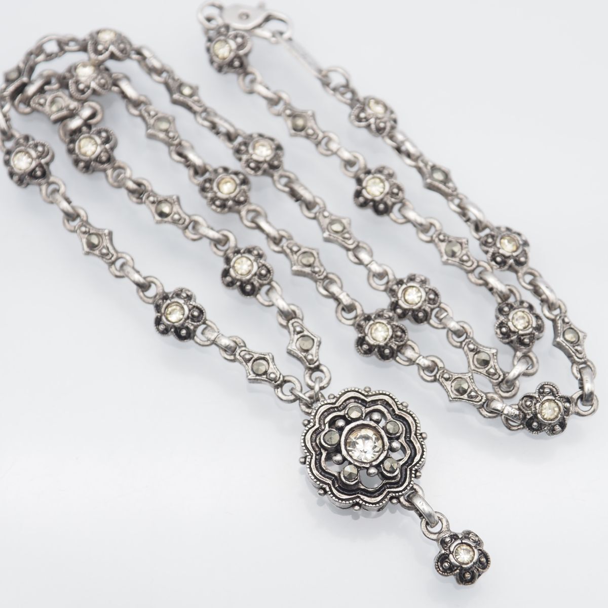 > F573 ロクサンヌアズリン Roxanne Assoulin ネックレス ダイヤモンド風 マーカサイト マルカジット デザイン シルバー