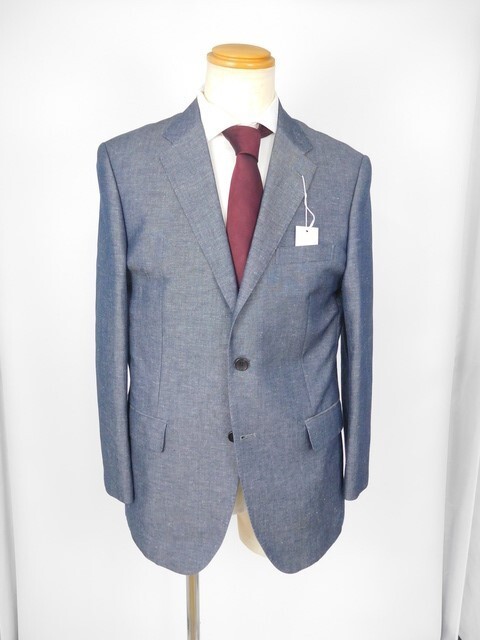 > 売りつくし 新品7.5万円 高品質 日本製 夏物 リネンコットン テーラードジャケット ライトネイビー メンズ AB6 Lサイズ 2ボタン 綿 麻 496
