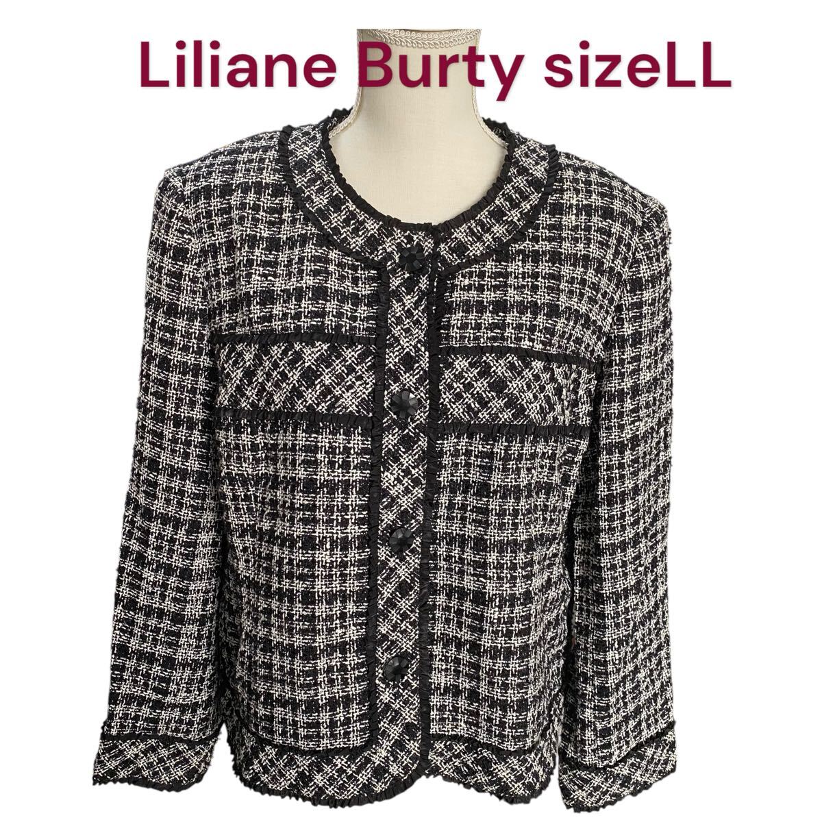 > 美品 リリアナビューティー ノーカラー ツイード ジャケット LL、13号、XL Liliane Burty
