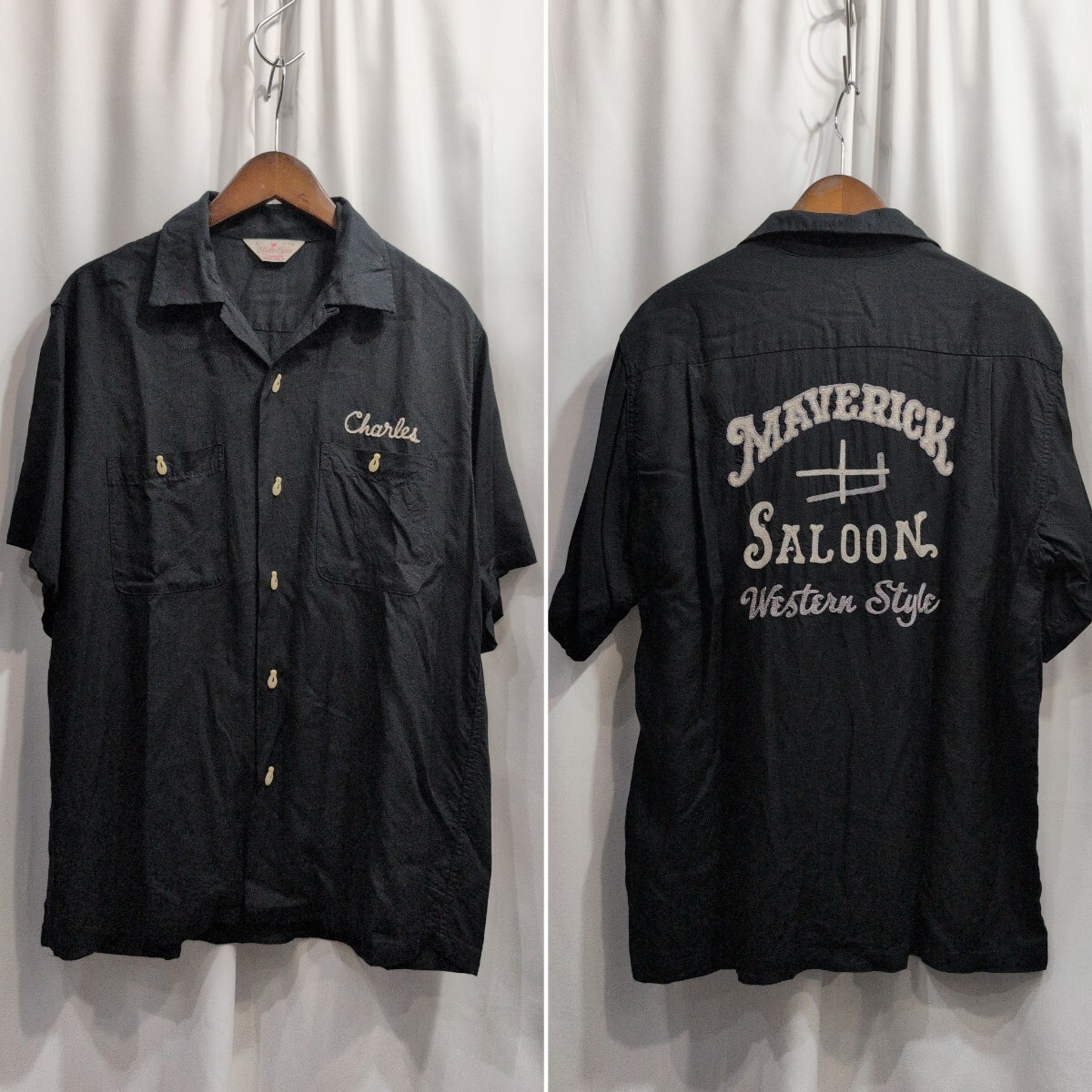 - 東洋 Style Eyes スタイルアイズ 刺繍 レーヨン ボウリングシャツ L メンズ 半袖 ボーリングシャツ ワークシャツ/キングルイ/ヒルトン
