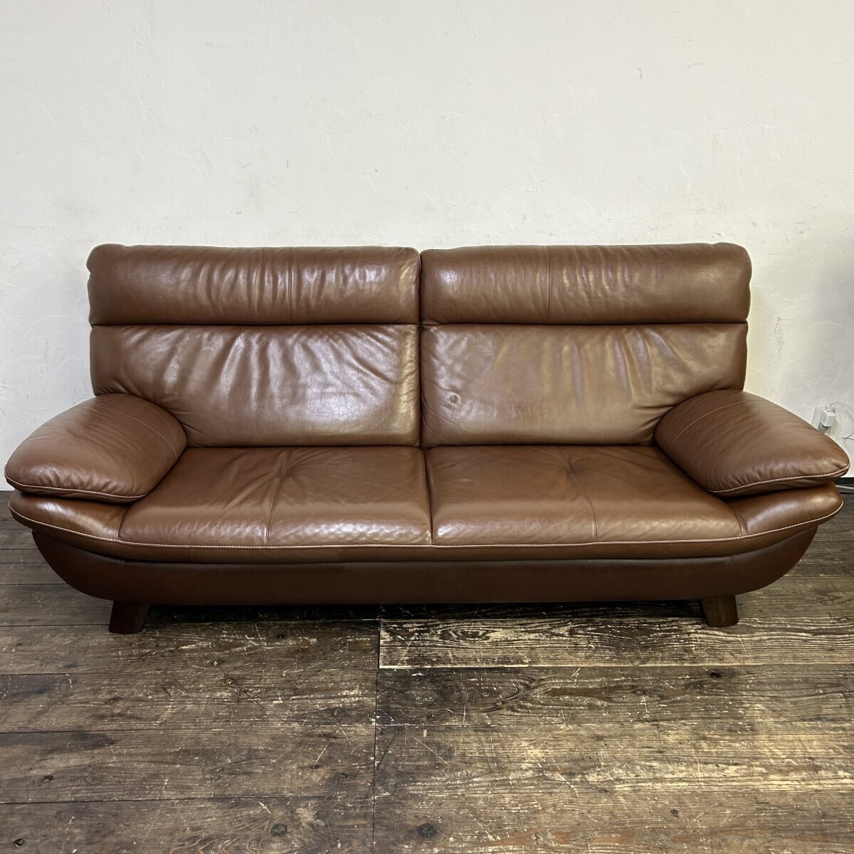 - 美品!karimoku カリモク 3人掛け ソファ トリプルソファ 3シーター ブラウン 本革 ブラウン 36万円 パレット発送
