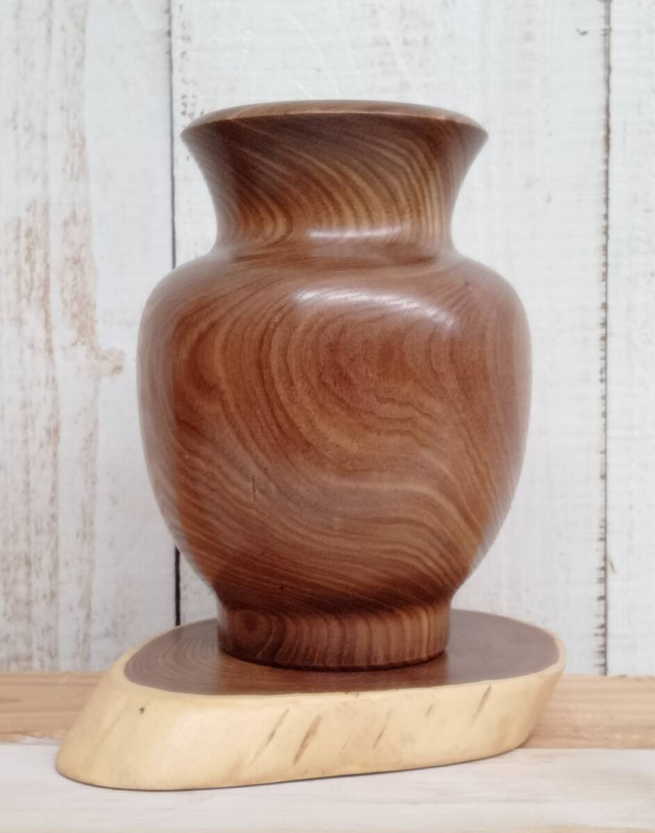 - *藪工作所 *花瓶 花立て 一輪挿し 壺 飾り壷 茶道 華道 *木製 えんじゅ 槐樹 *台座 栞付き *高さ 15.5cm
