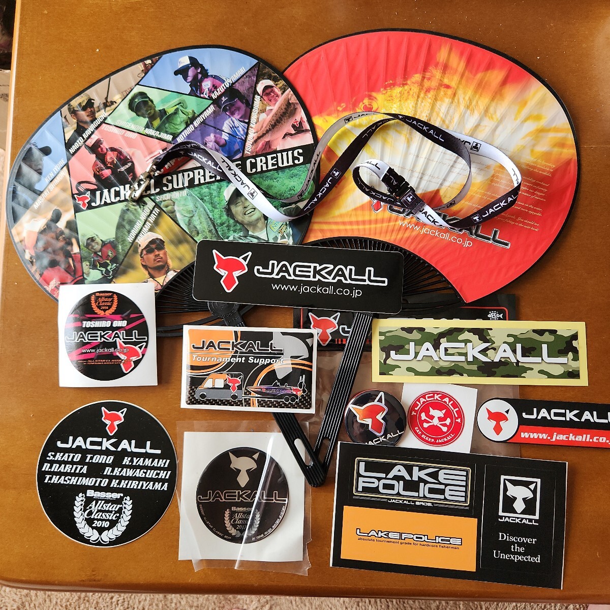 > 【送料無料】ジャッカル★超〜激レア福袋★うちわ★ネックストラップ★非売品ステッカー★缶バッジ★バサーオールスタークラシック