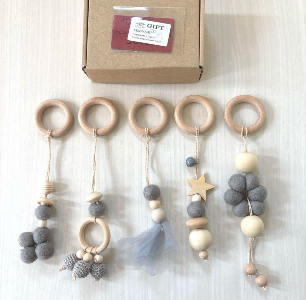 - Okawari Home 北欧風 天然木製ベビージム用おもちゃ 5個セット ガラガラ ベビーカー ベビーベッドぶら下げ 知育玩具 インテリア おしゃれ