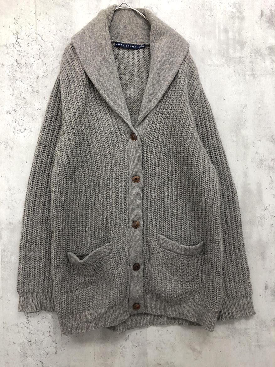 > Ralph Lauren ラルフローレン 羊毛×カシミヤ ショールカラー カーディガン sizeM(165/92A)/グレー ◆■ ☆ fic4 レディース
