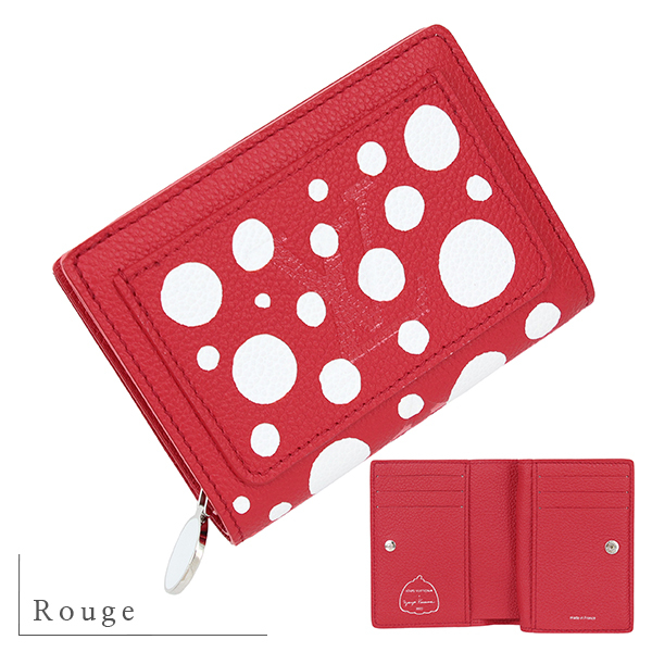 > ルイヴィトン 二つ折り財布 LV×YK ポルトフォイユクレア モノグラムアンプラント ドット M82103 レッド ルージュ h-i844