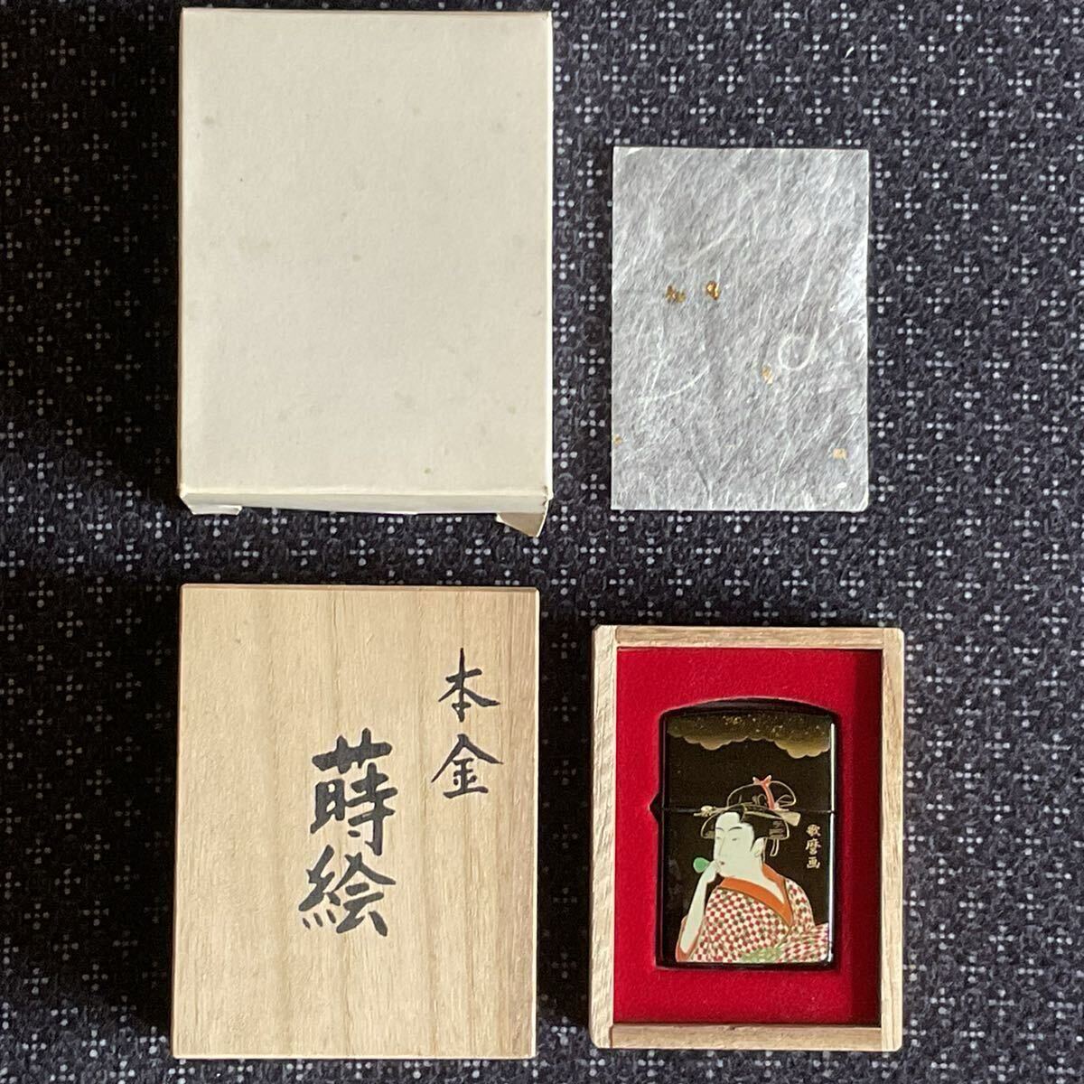 - 未使用【本金 蒔絵 Zippo『ポッピンを吹く女』歌麿画 専用木箱 保証書 紙ケース 保管品】