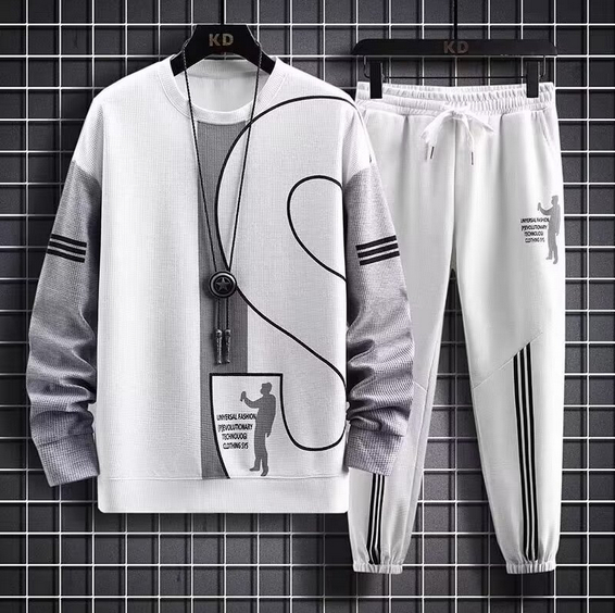 - メンズ セットアップ トップス+ズボン 2点セット スポーツウエア 大きいサイズ長袖 春秋 ゆったり カジュアル 黒 白 M~5XL選択可