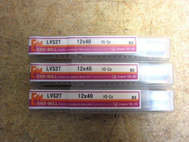 - 送料無料 未使用 未開封 S&K 三興製作所 ハイスエンドミル LVS2T 12×40 2枚刃 ロング刃 刃径12mm 刃長40mm 計3本 エンドミル 切削工具