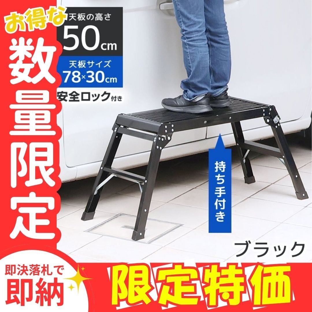 > 限定セール【ブラック】新品 折りたたみ アルミ踏み台 高さ50cm 脚立 耐荷重150kg ワンタッチ コンパクト 足場 洗車台 ステップ台 作業台