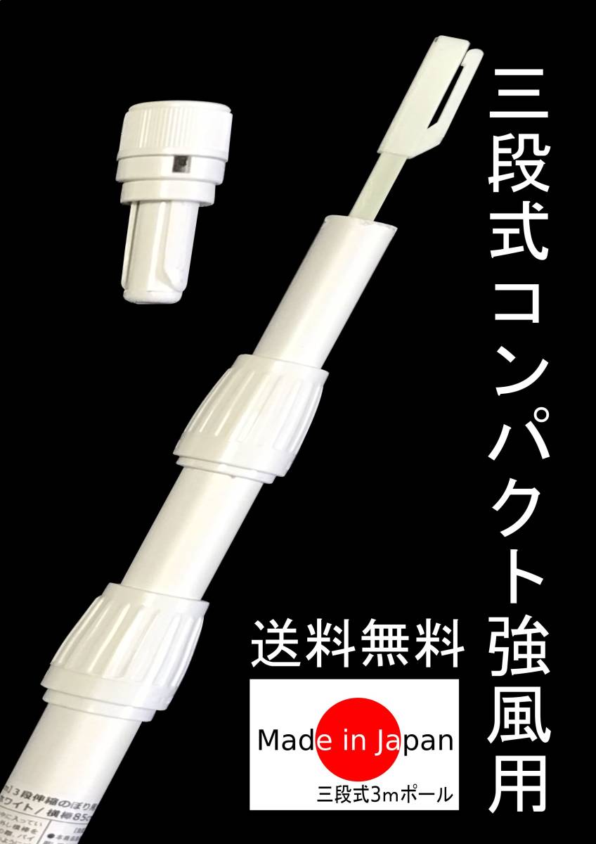 - のぼりポール【3段式3m伸縮 のぼり竿 強風用】1本 のぼり旗用 3mスタンダードポール 3段伸縮 幟旗コンパクトで丈夫強風用 全国送料無料