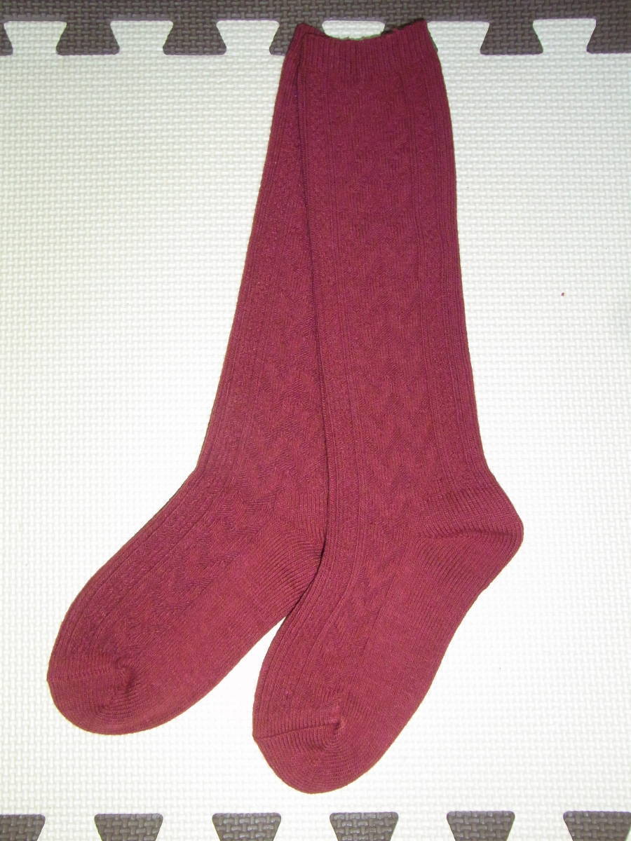 - ★美品★可愛い女の子★ハート★ケーブル柄★赤オレンジ色★ハイソックス★靴下★サイズ21cm★