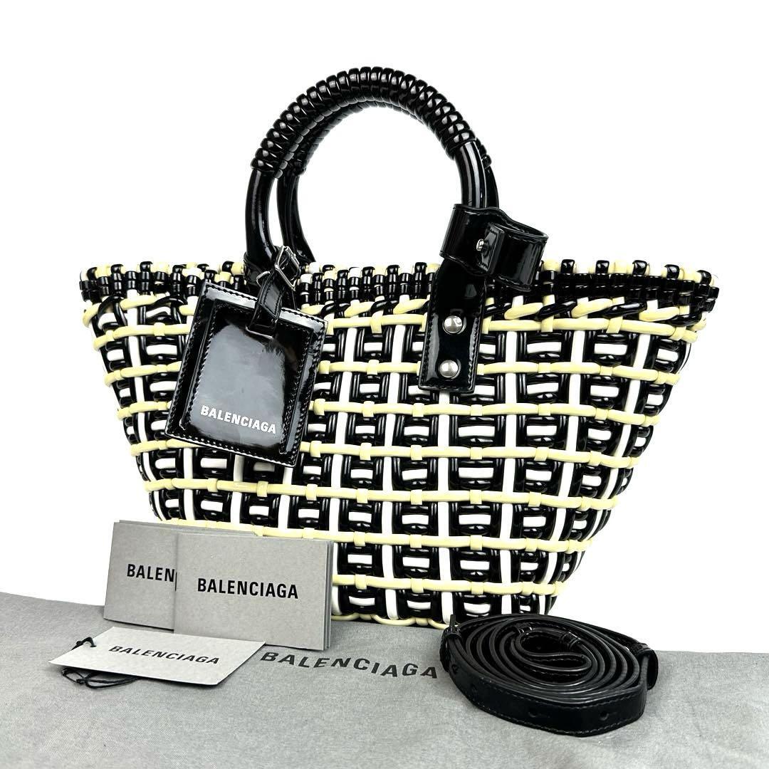 > 極美品 BALENCIAGA バレンシアガ ビストロ XS バスケット 2way ハンドバッグ トート ショルダーバッグ バイカラー パテントレザー 人気