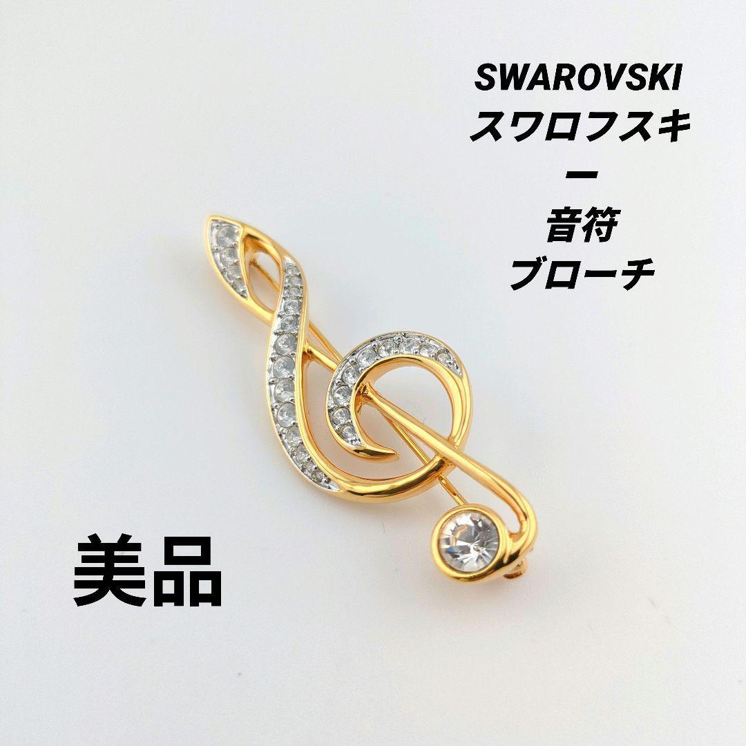 - 【美品】SWAROVSKI スワロフスキー ブローチ 音符モチーフ ゴールド