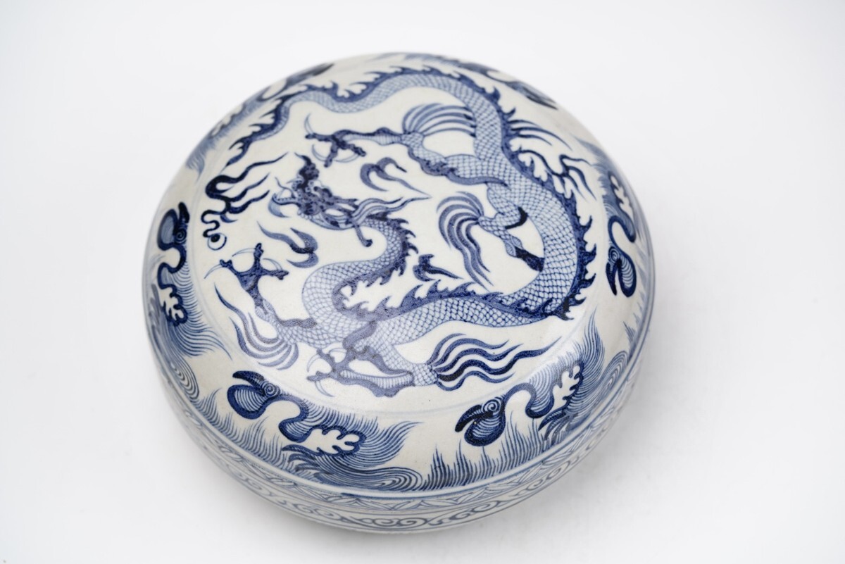 > 中国古美術 元時代 青花 香合 骨董 古玩 時代物 中国美術 古美術 骨董品 唐物 当時物 高さ11cm 直径20.5cm