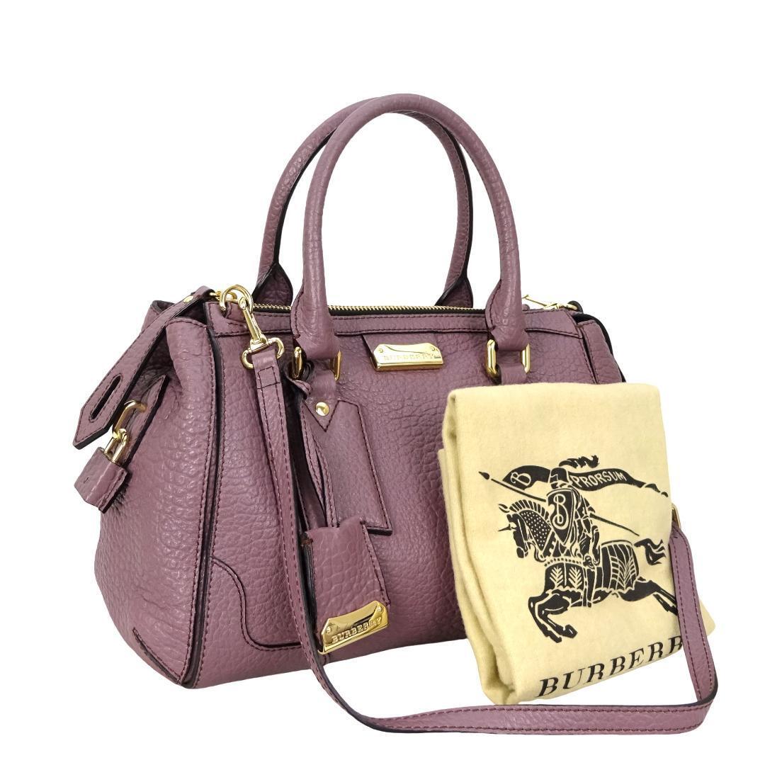 - 本物 未使用■バーバリー■レザー 2WAY トート パープル ゴールド 斜めがけ ショルダー トートバッグ ハンドバッグ
