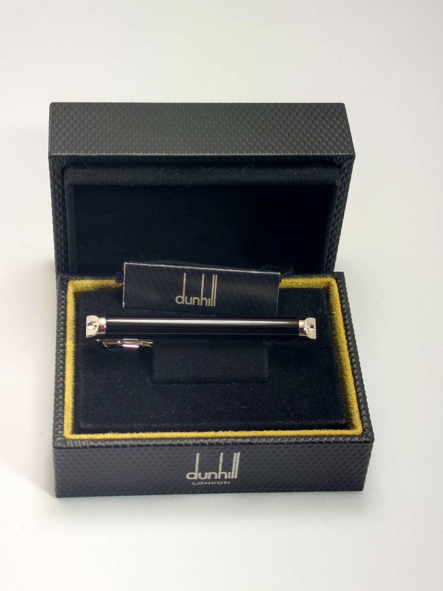 - dunhill ダンヒル シルバー / ブラック ネクタイピン 箱付 タイピン タイバー 銀 / 黒 シンプル デザイン 中古・現状品 管912C3
