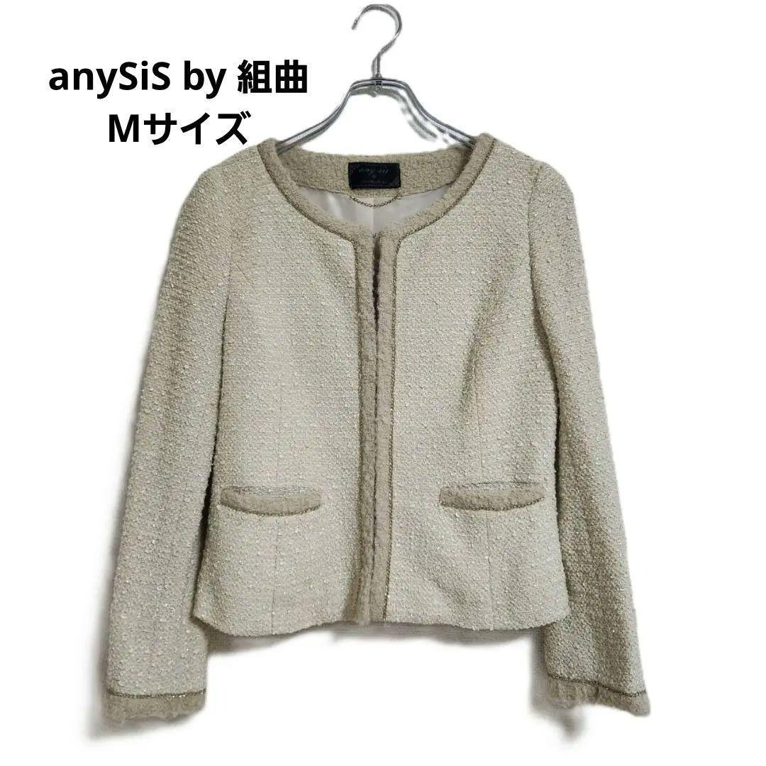 - anySiS by 組曲 ノーカラージャケット ベージュ M ツイード 上品