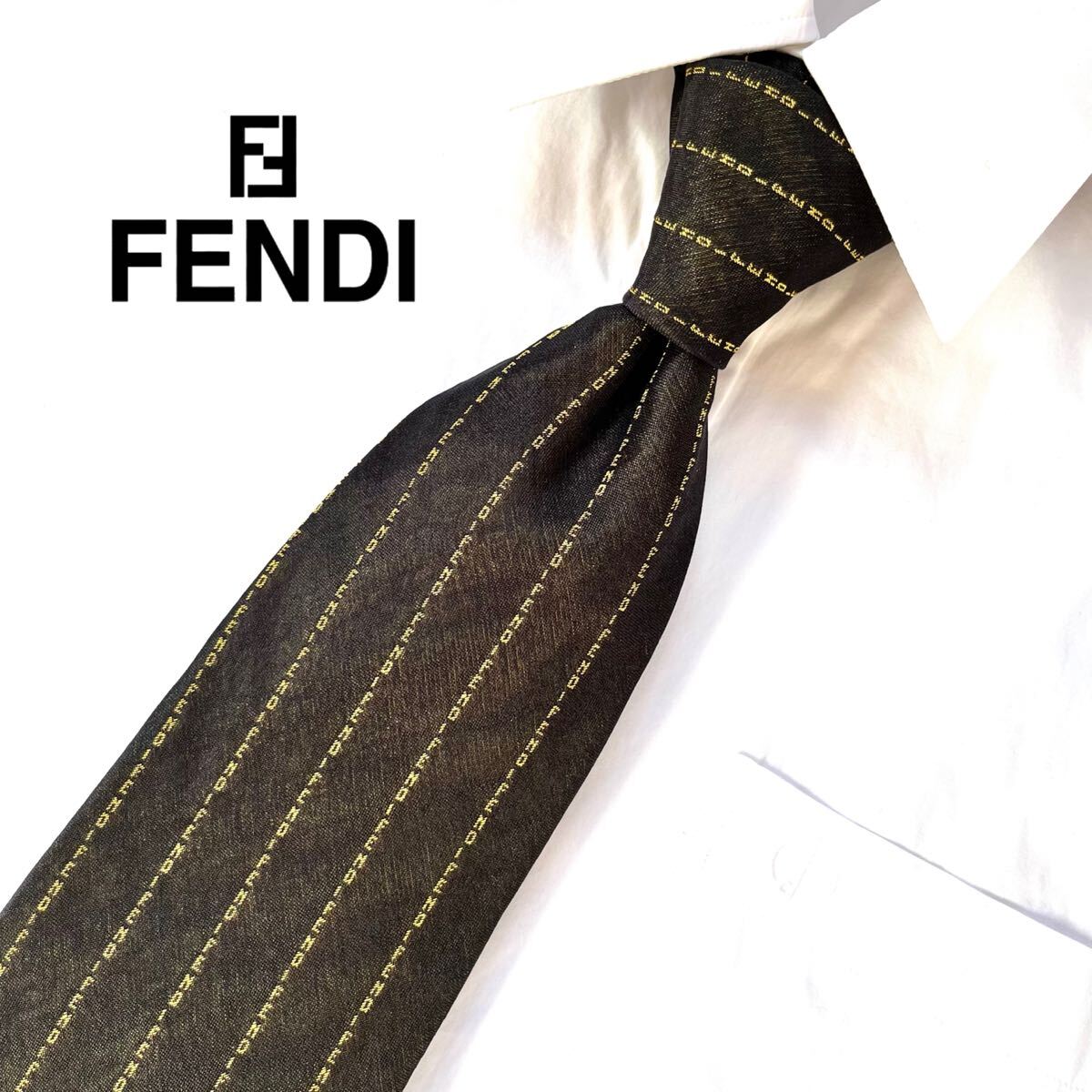 - FENDI フェンディ ネクタイ シルク 絹 100% ドット柄 黒 ブラック イエロー ビジネス カジュアル フォーマル 紳士 イタリア製
