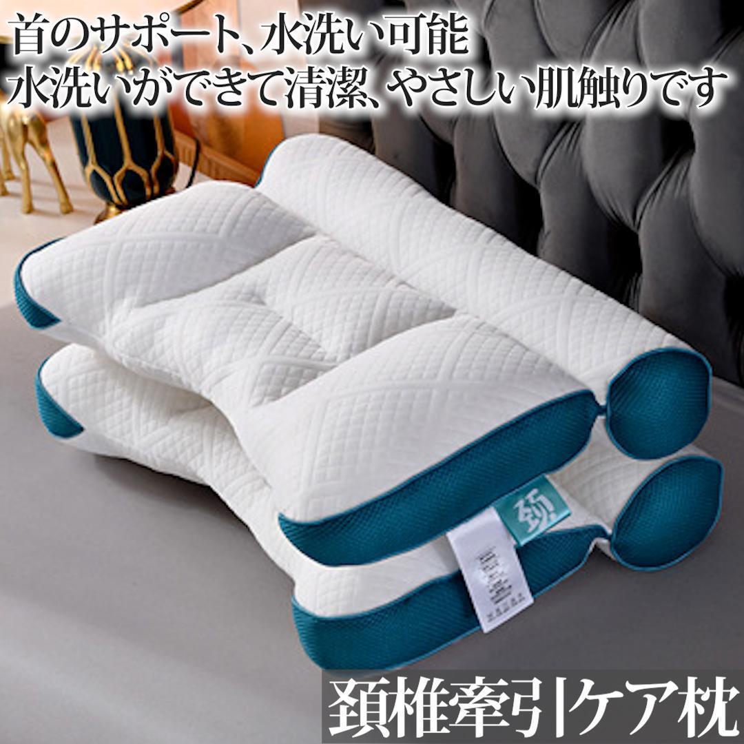 - 頚椎牽引 ケア 枕 快眠枕 肩こり 横向き寝 首こり 超快適 ハイテク 快眠 低反発 安眠 熟睡 いびき 疲労回復 ストレートネック ブルー