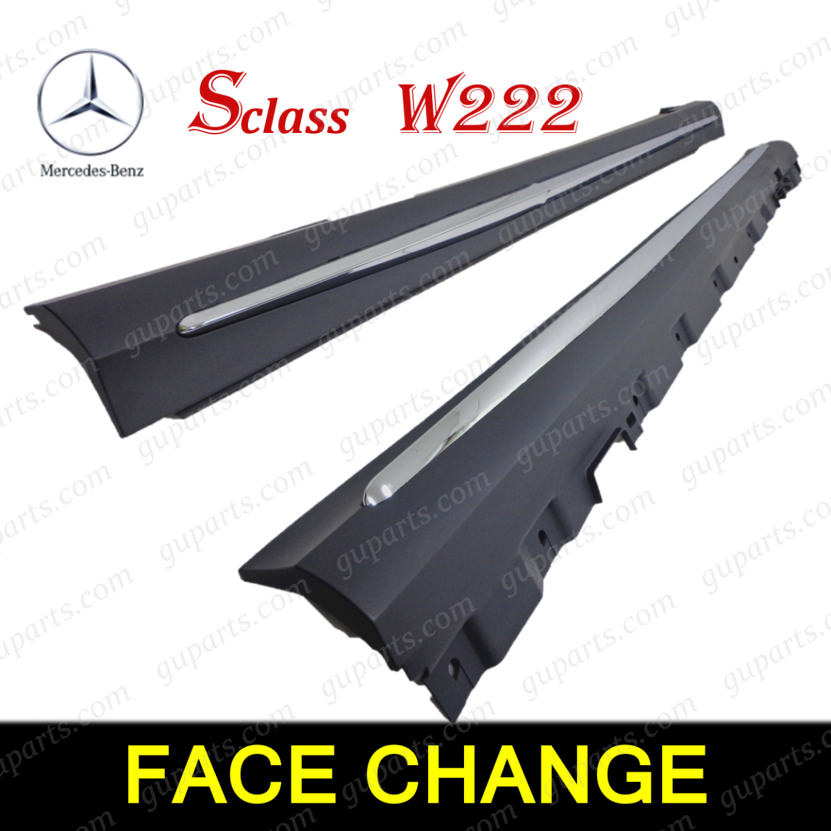 - ベンツ S W222 S63 S65 AMG サイド スカート スポイラー ロングホイール トリム クローム ノーマル → AMG フェイスチェンジ 左右