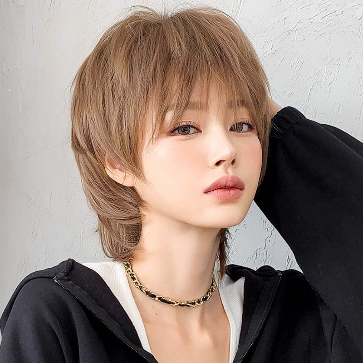 - W36◎フルウィッグ ファッションウィッグ ショート ウルフ ベージュ 男装 かつら