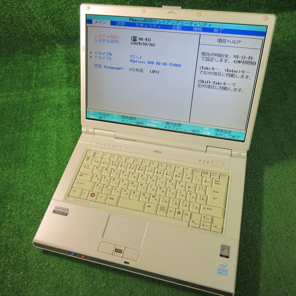 > [4348]★Windows Vista当時物★ 富士通 NF40U FMVNF40U Celeron M 410 1.46GHz メモリ512MB DVDマルチ 15.4インチ Wi-fi BIOS OK ジャンク