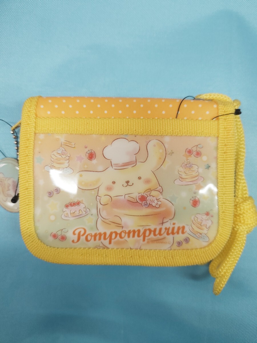 - 新品☆サンリオ ポムポムプリン二つ折り財布 ネックストラップ付き