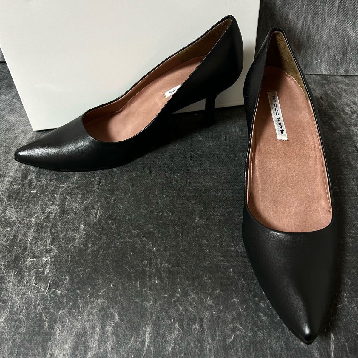 > 【未使用/大きいサイズ】¥26,400 RABOKIGOSHI ラボキゴシ タルサタイム #12156 ヒールパンプス レザー ブラック レディース size25.5 *2B