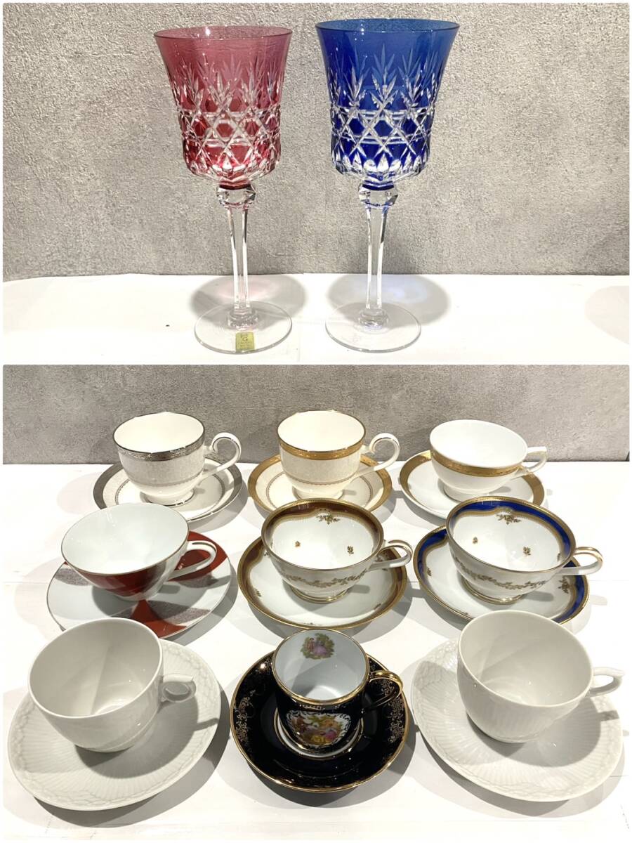 - h459★1円~中古品【グラス カップ&ソーサー おまとめ】カガミクリスタル/ノリタケ/リモージュキャッスル/ロイヤルコペンハーゲン 食器