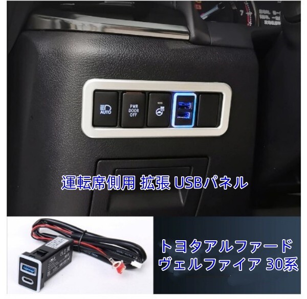 > トヨタアルファード ヴェルファイア 30系 充電ポート 運転席側用 拡張 USBパネル 内装パーツ 2015~2022年式対応